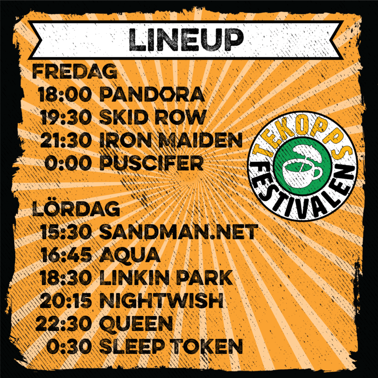 Varje år så är det en ny lineup med artister som "ställer upp" på Tekoppsfestivalen. Det vill säga att vi hittar live spelningar på nätet. Spelningarna bestäms tillsammans med våra gäster, genom att interagera med omröstningen för vilka band man vill se. Det är i regel en timme långa spelningar på Lipton Stage där det spelas långt in på natten