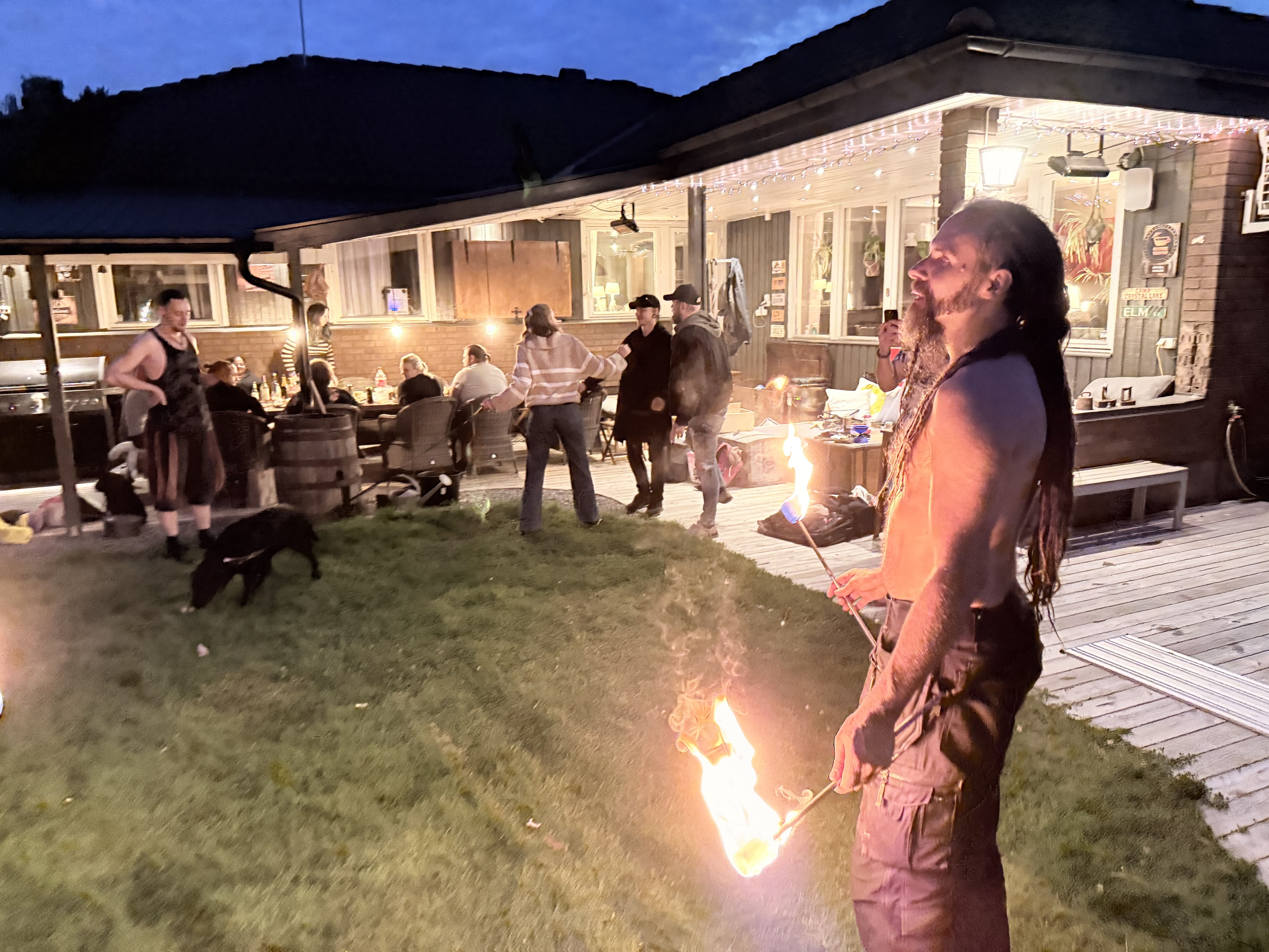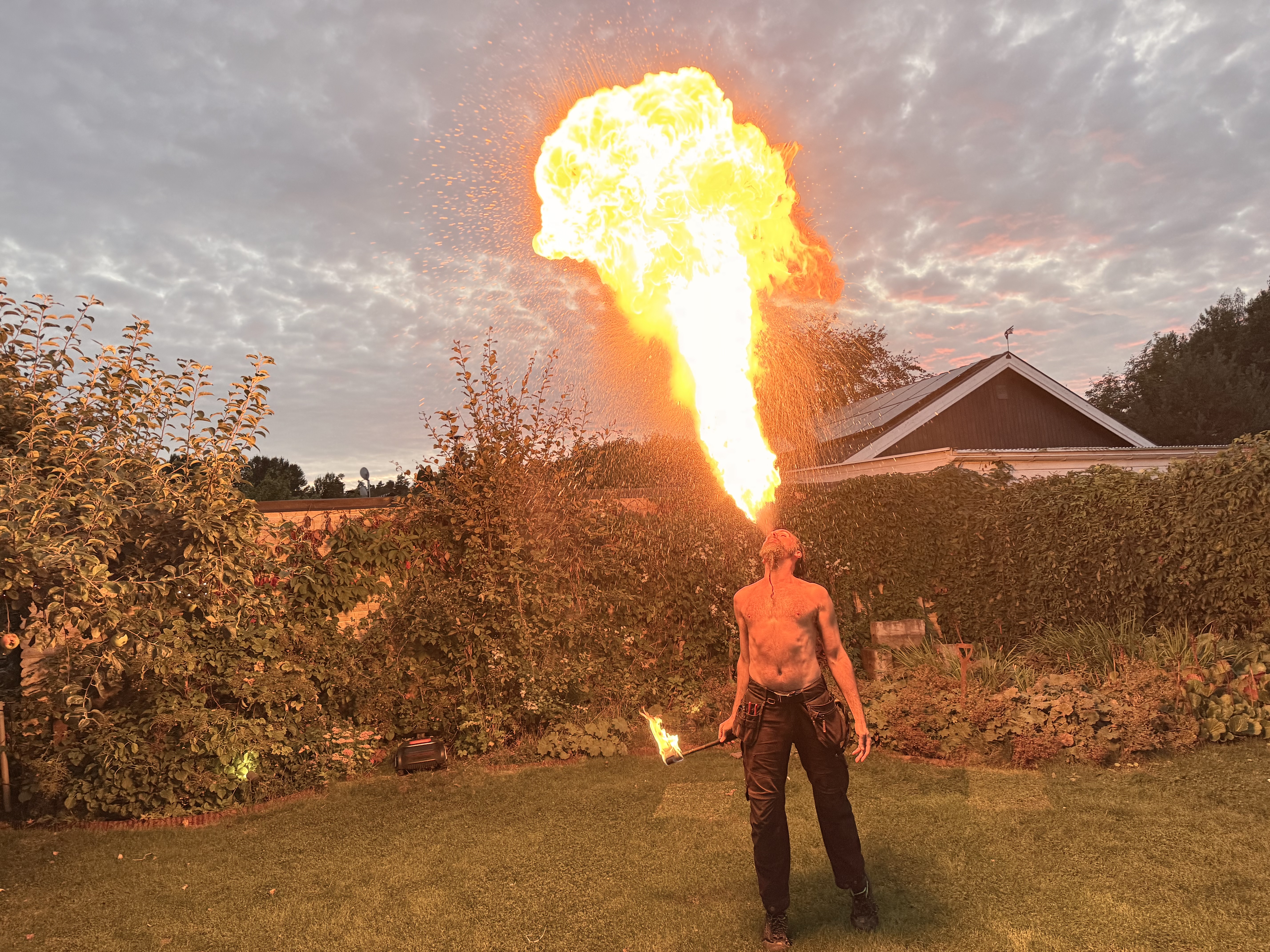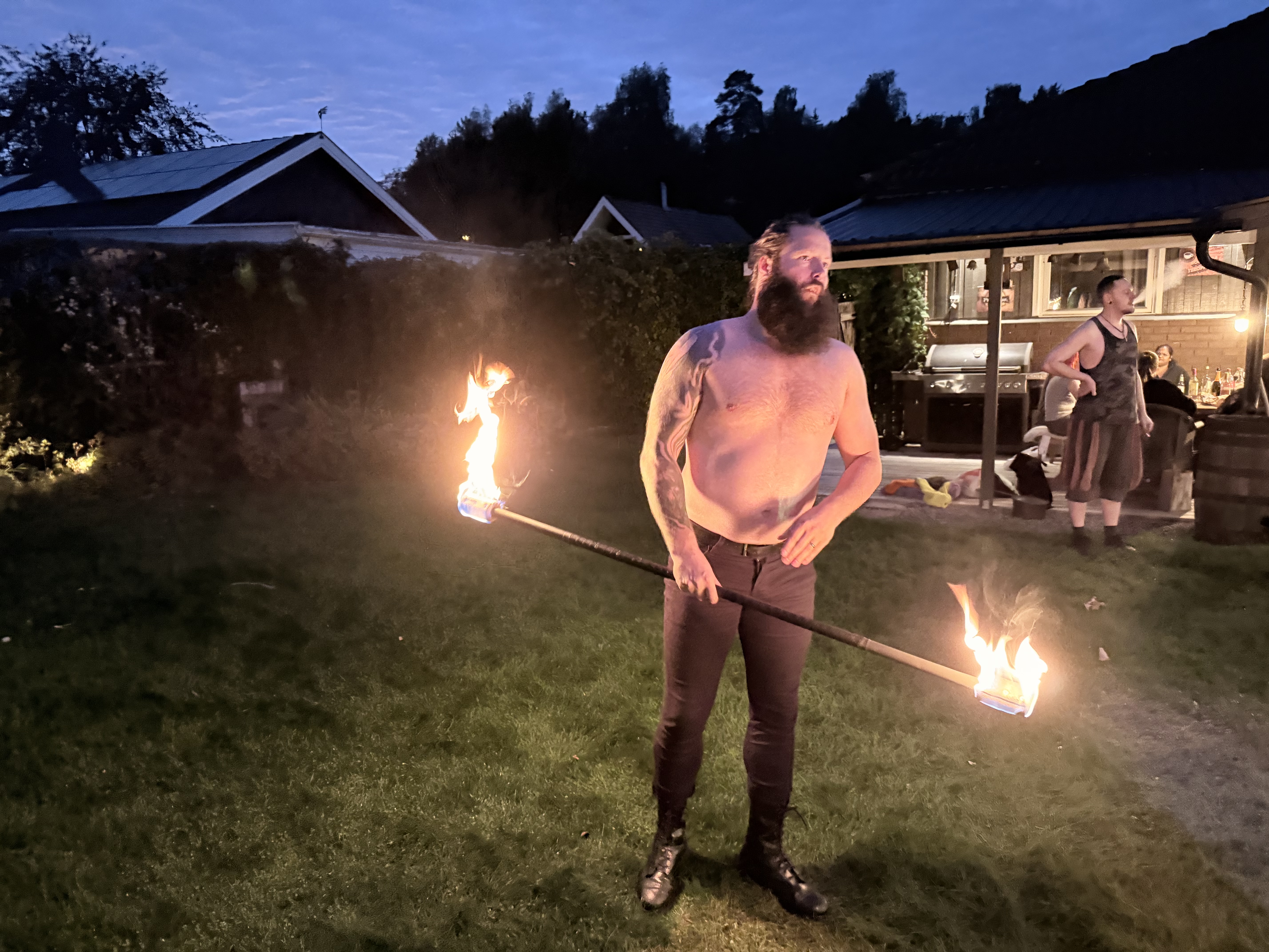Igår hade vi en kräftskiva och sen en eldfest på Tekoppen, det var riktigt lyckat! Vi känner ju en del gycklare som gärna leker med eld och vi har en stor trädgård så det blev ett väldigt lyckat evenemang!
