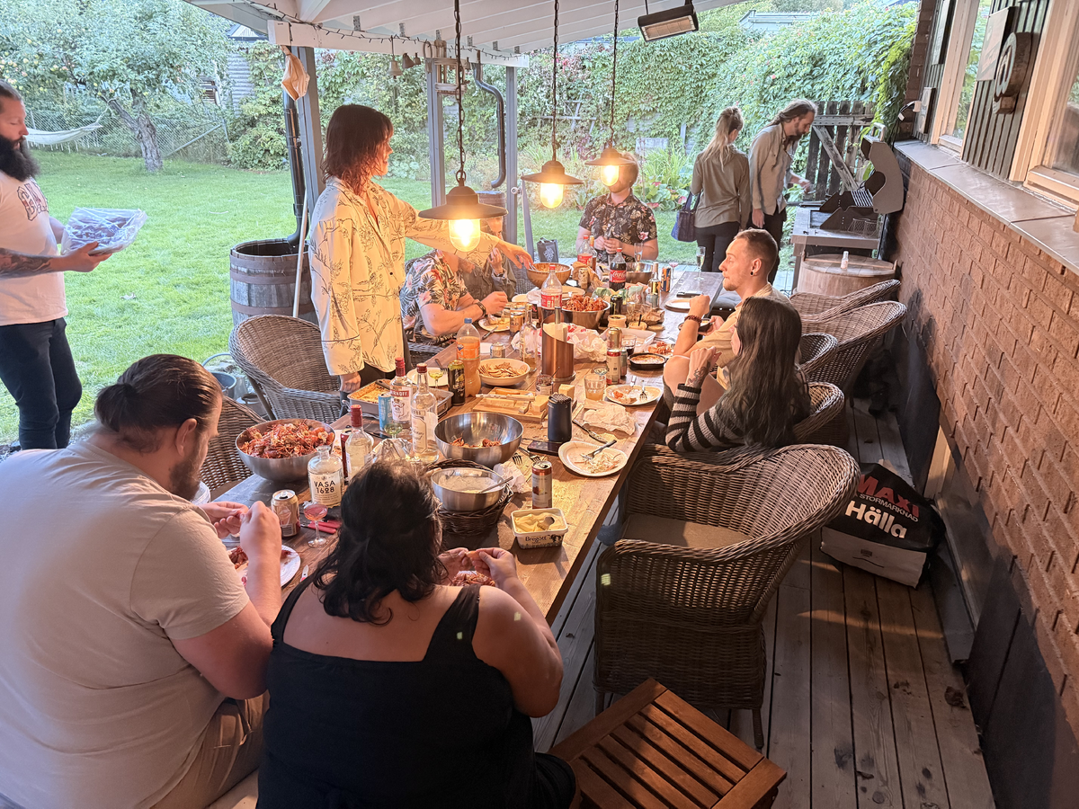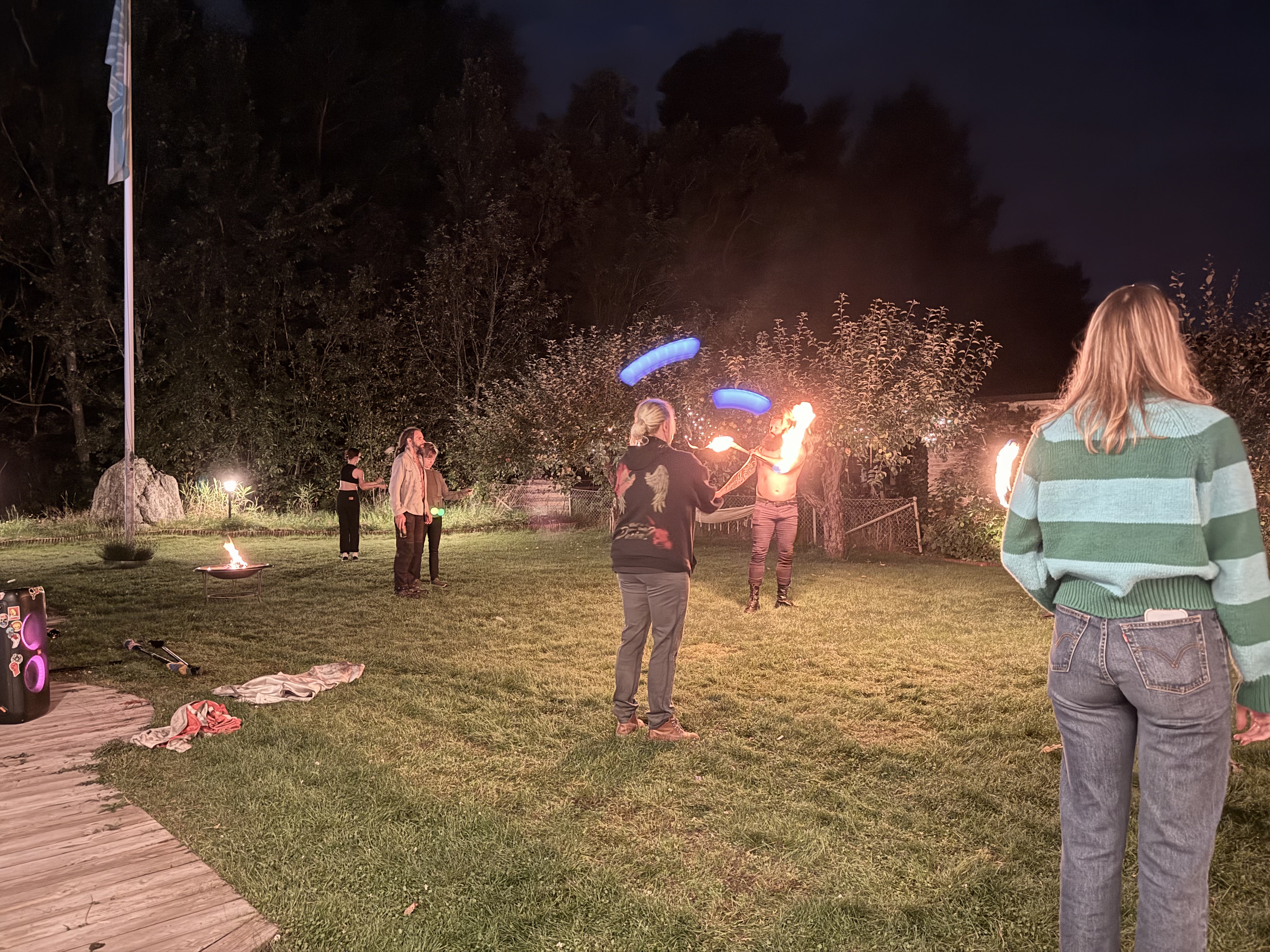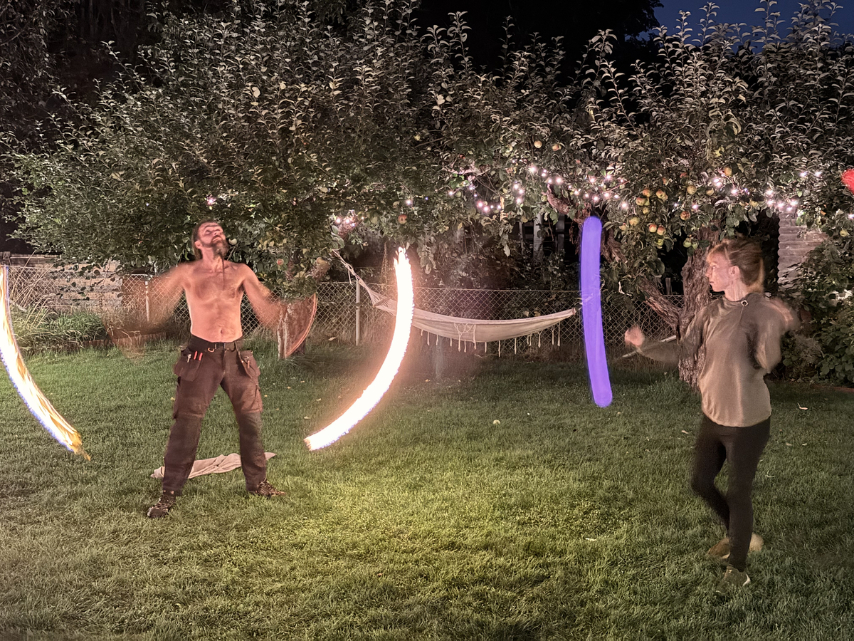 Igår hade vi en kräftskiva och sen en eldfest på Tekoppen, det var riktigt lyckat! Vi känner ju en del gycklare som gärna leker med eld och vi har en stor trädgård så det blev ett väldigt lyckat evenemang!