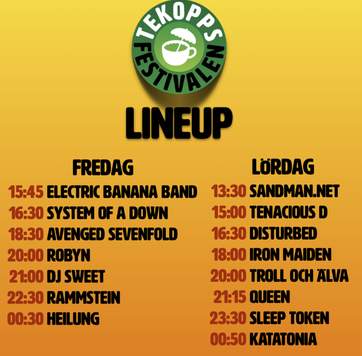 Tekoppsfestivalen är en hemma-festival som vi anordnar varje sommar. Det har kommit att bli en populär årlig tillställning med musik i form av ”live” spelningar, camping, lekar och bad. Vi har öppen inbjudan till alla våra vänner, och vänners vänner, med kriteriet att man anmäler sig på denna sida. På så vis kan vi hålla koll på antalet gäster som stannar över dagen kontra natten. Här är lite information om tillställningen